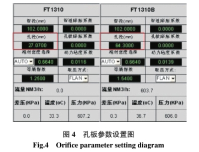 此次改造后,將2臺(tái)高級(jí)一體化孔板流量計(jì)分別裝入1.0658in(27.071mm)及2.531in(64.287mm)尺寸的孔板,以實(shí)現(xiàn)大孔板和小孔板對(duì)該油田全部油井產(chǎn)氣量測(cè)量范圍的全覆蓋,操作人員只需開關(guān)閥門,即可完成大小孔板的流程切換,避免了頻繁更換孔板造成損壞。在減少人員工作量與工作強(qiáng)度同時(shí),有效提升了孔板流量計(jì)的計(jì)量精度(圖3、圖4)。