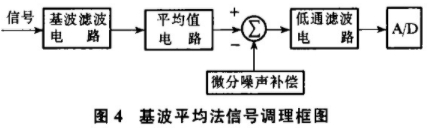 電容隔離法或補償電路不能很好解決感應(yīng)信號失真和干擾信號被放大等問題.經(jīng)過大量實驗和對國外電磁流量計的研究,本文提出一種基波平均值轉(zhuǎn)換的信號處理方法,基于e(t)與峰值、平均值、有效值成正比關(guān)系,對信號進行濾波并采用基波平均值處理轉(zhuǎn)換的方法,可以有效提高電.磁流量計抗干擾的能力.結(jié)構(gòu)框圖如圖4.