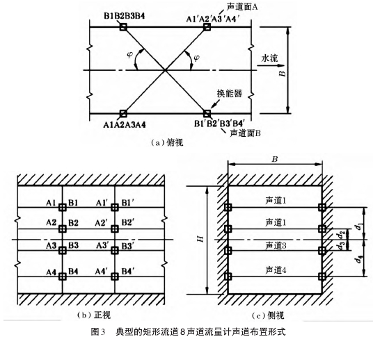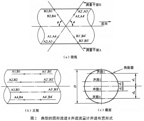 超聲波流量計(jì)是在上述原理的基礎(chǔ)上,在流道內(nèi)按照--定的規(guī)則設(shè)置多條聲道,將各條聲道測得的流道軸向線平均流速采用相應(yīng)的積分方法進(jìn)行積分計(jì)算,從而得到流道內(nèi)流體的總流量。這種時差式超聲波流量計(jì)方案,能夠利用常年“暢流期”條件,有利于泵站水量計(jì)算,避免了人為選擇推流計(jì)算參數(shù)而引起較大誤差的問題。