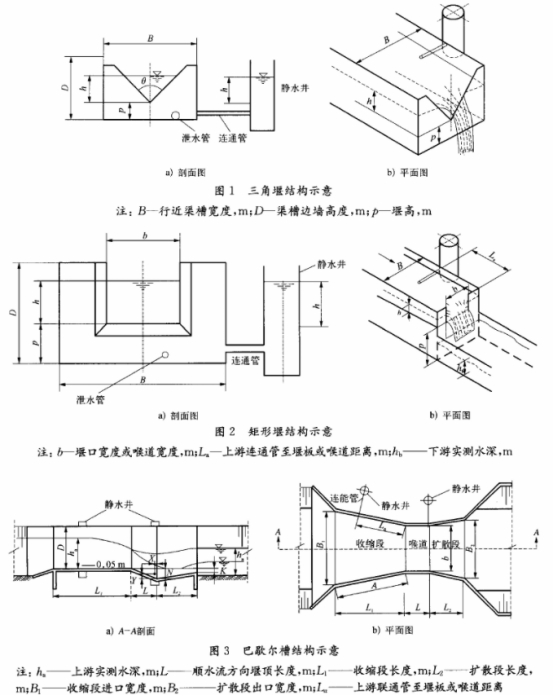 因篇幅有限,文中僅介紹三角堰、矩形堰及巴歇爾槽的測量原理及計算公式。