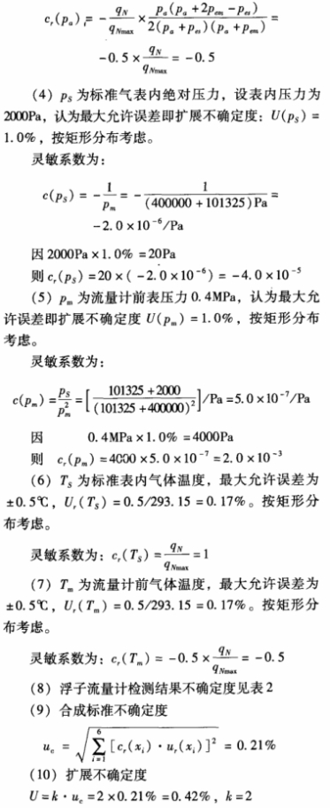 (2)標(biāo)準(zhǔn)氣表的不確定度