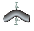●差壓變送器應安裝在彎管傳感器的下方,使引壓管中的氣體排放回到管道中。如果現(xiàn)場條件是差壓變送器必須安裝在彎管傳感器上方,則要求與根閥連接的引壓管應先向下,然后緩變轉彎向上,與差壓變送器連接。